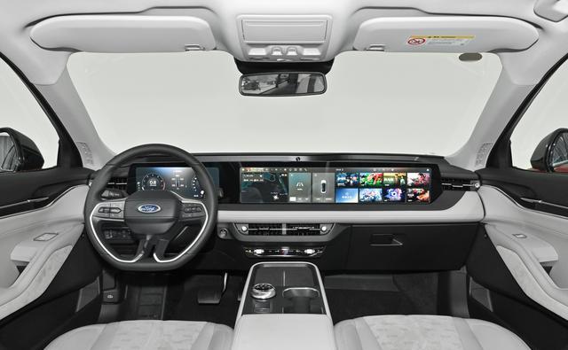 坐进车内,中控台的布局还是熟悉的风格,最显眼的当然是那块大屏。12.3英寸的液晶仪表盘加上27英寸的4K一体屏,总长度有1.1米,这种贯穿式设计现在不少车都在用。26款在空调出风口下方增加了实体物理按键,这个改动挺实用,开车时盲操作更方便。副仪表台区域改成了悬浮式岛结构,前面是手机无线充电面板,支持50W快充,后面是旋钮式换挡机构和开放式杯架。车机系统升级后,操作流畅度确实有提升,8155芯片的算力应付日常使用绰绰有余。系统支持Apple CarPlay无线互联,语音助手也升级到了第四代,带大语言模型,能理解连续指令和上下文。方向盘是平底造型,握感适中,转向力度可以随车速变化。用料方面,中控台用了不少软质材料包裹,缝线处理比较细致,整体做工在同价位合资车中属于正常水平。高配车型有B&O音响,音质表现对得起这个价位。