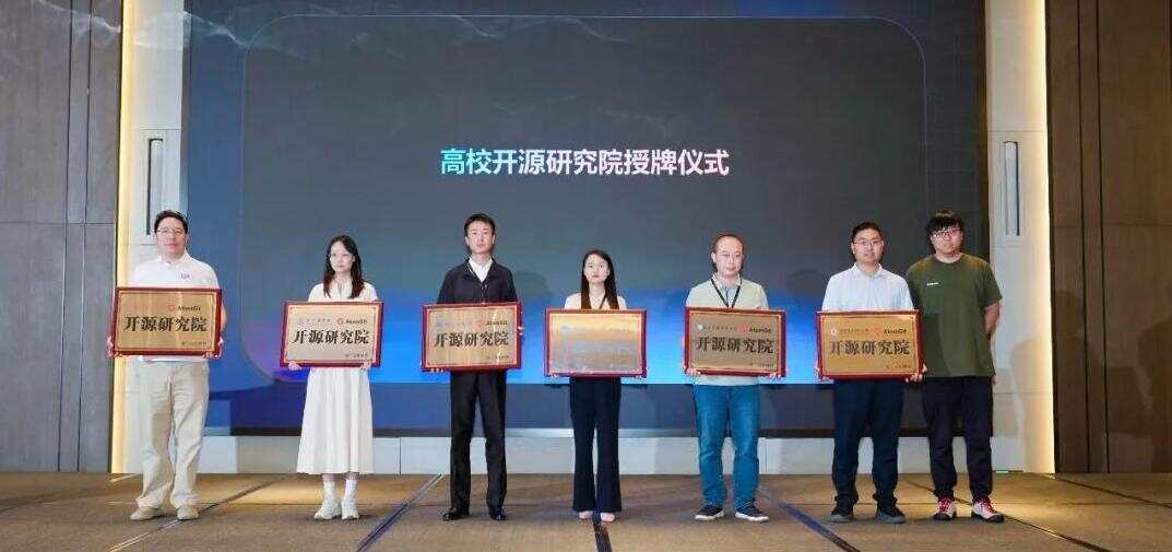 本次发布会两大核心生态共建环节,将现场氛围推向顶点。其中,AtomGit开源研究院高校授牌仪式正式举行,标志着平台产教融合战略从规划迈入实质落地阶段。