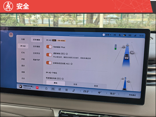 评测车搭载IM AD辅助驾驶系统,支持L2级辅助驾驶,跟车距离支持5档调节,当调整到最近档位时与前车间距适中,不容易被其他社会车辆加塞。