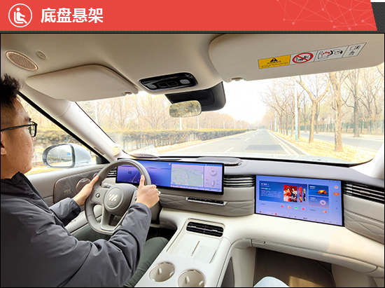 评测车配备了灵蜥数字底盘3.0,内置电控动态阻尼调节系统、双腔闭式空气悬架等技术,可以对大部分路面颠簸所产生的振动进行高效过滤,进而提升行驶时的驾乘舒适性。